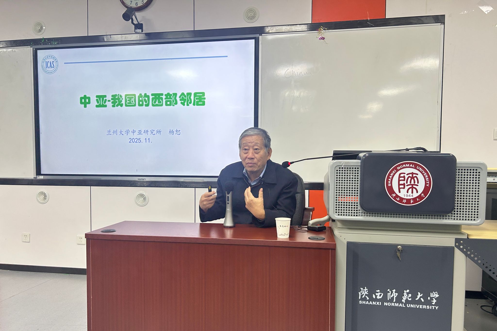 为深化师生的国际视野,加强区域国别研究,提高全球胜任力,11月15日晚,陕西师范大学外国语学院第40期“会通讲堂”在雁塔校区教学六楼6301举办。本次讲座特邀兰州大学原副校长、联合国教科文组织高等教育创新中心中亚地区顾问、兰州大学中亚研究所所长杨恕教授担任主讲嘉宾,陕西师范大学马克思主义学院热合木江·沙吾提教授担任主持人。外国语学院党委副书记鲁燕、俄语系教师唐可欣及各年级100余名学生共同参加了讲座。