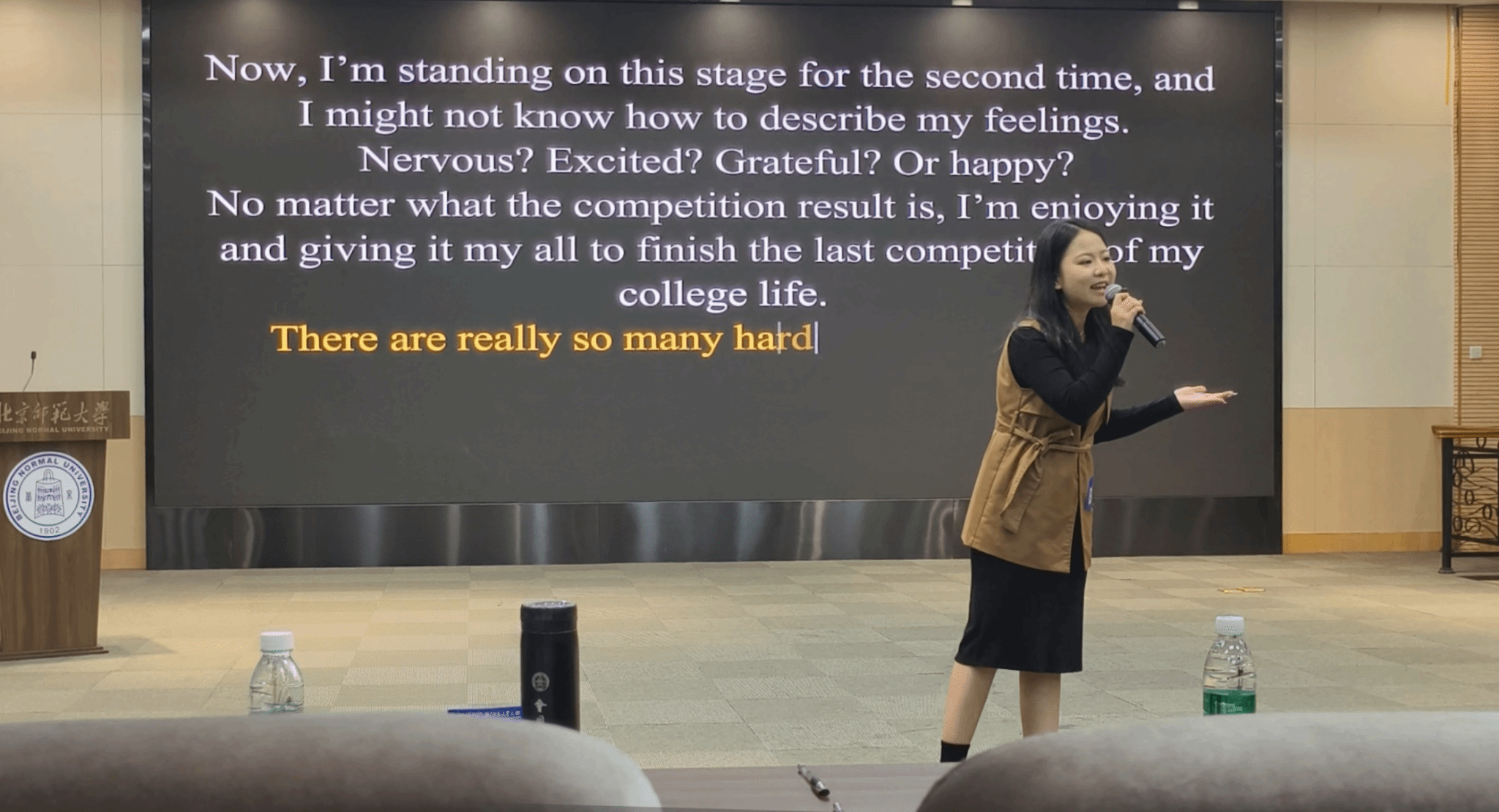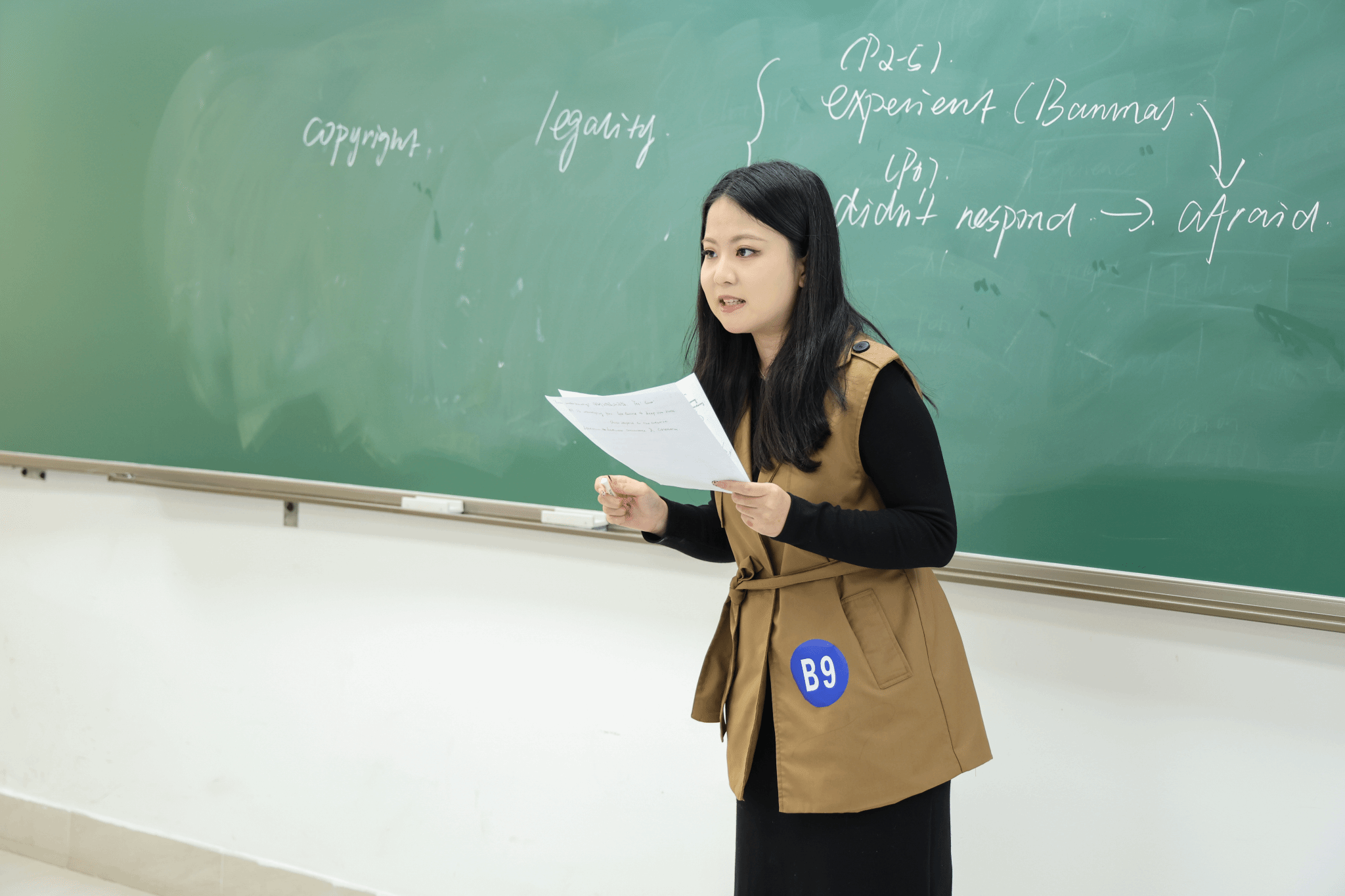 本次比赛设置 “才艺表演 + 现场授课” 双环节,更以 “赛前 1 小时发题、临时备课、公开授课” 的规则,全方位考验选手的应急应变与教学综合能力。在才艺展示环节,我系两名选手凭借灵动歌舞和专业配音,尽显多元风采,赢得现场阵阵掌声。在教学授课环节,两名选手从容不迫,快速完成教学设计,公开授课时逻辑清晰、互动自然,将知识点讲解得生动易懂,获得评委一致好评。