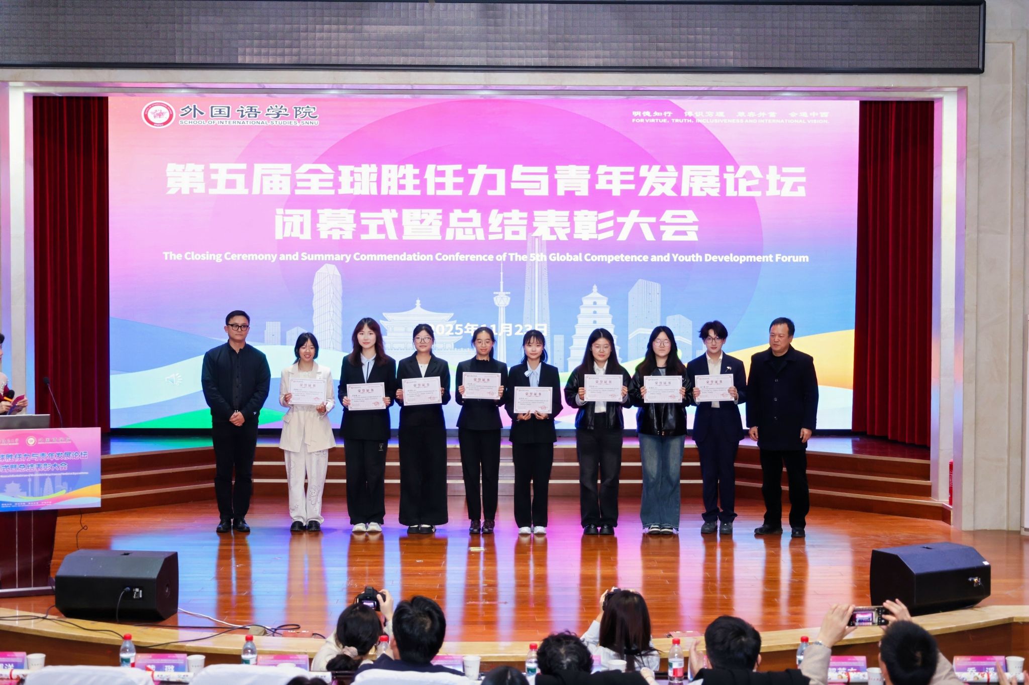 外国语学院第五届“全球胜任力与青年发展”论坛在同学们热烈的掌声和师生合影中圆满结束。