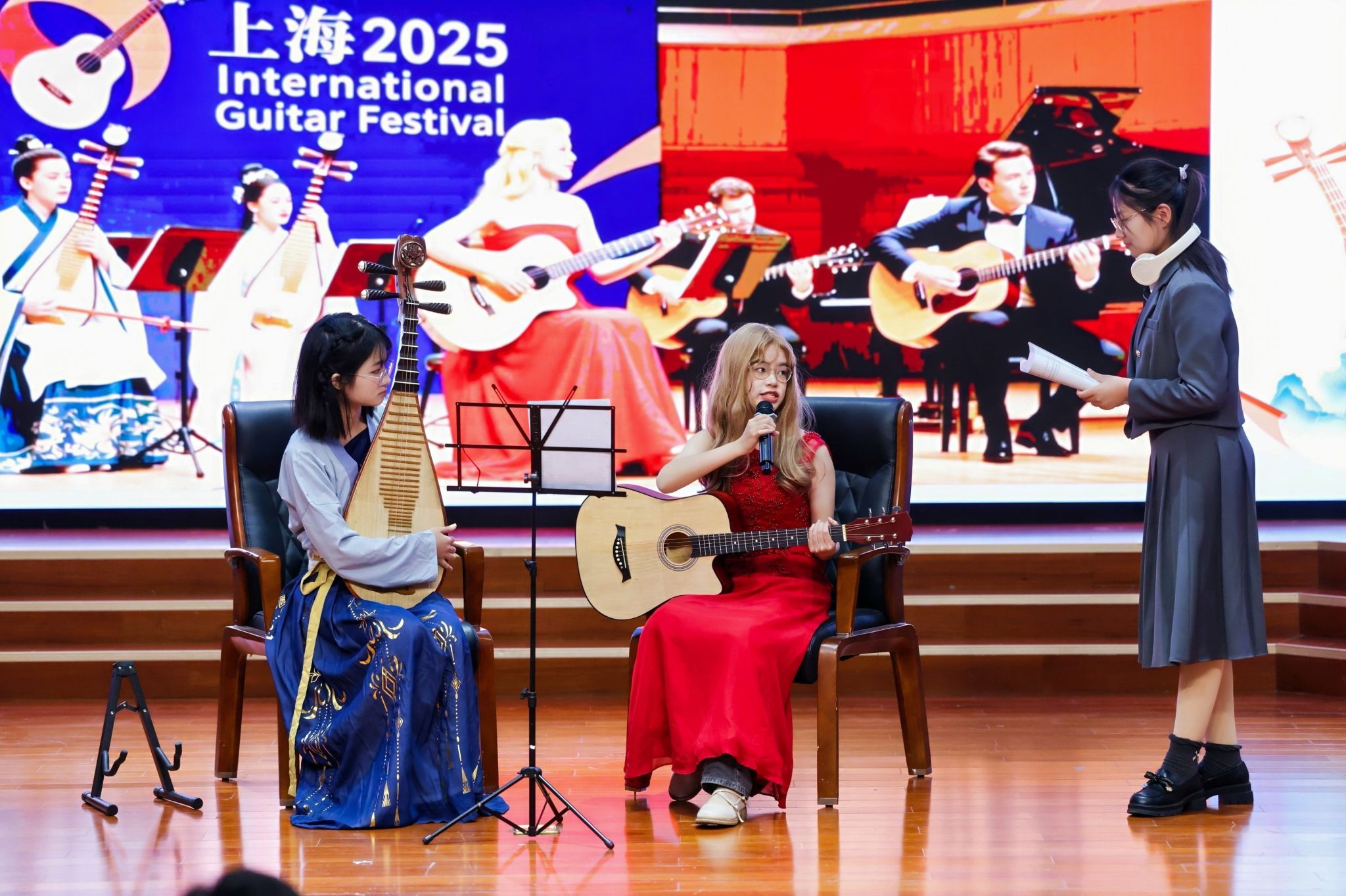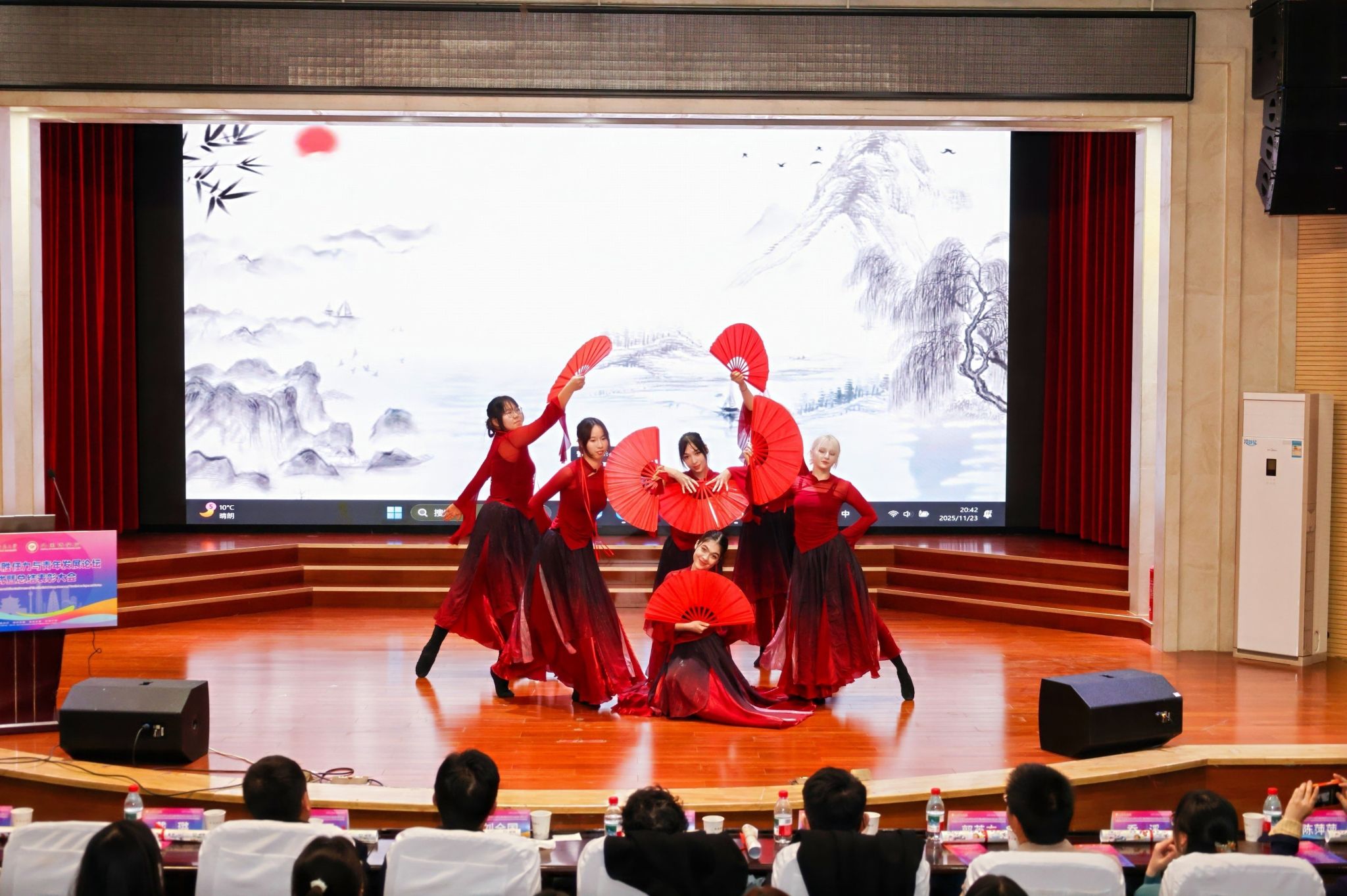 随后,中外学生带来了精彩纷呈的节目展演。国际汉语文化学院留学生表演的中华扇子舞《扇舞三秦》和外国语学院学生设计的微话剧《Strings in Harmony Bridge East and West弦音和鸣,蝶舞中西》,不仅展示了深厚的专业技能,也展现出跨文化交流的魅力。