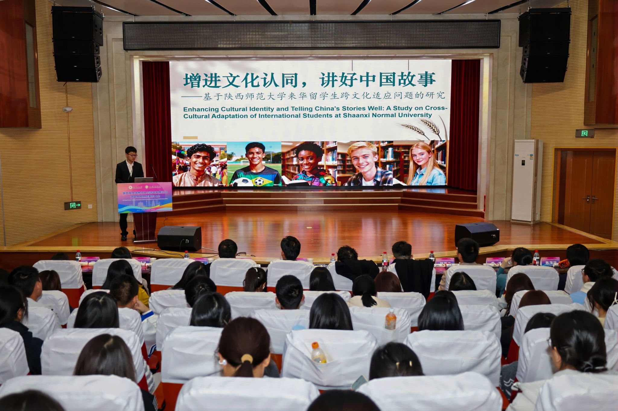 2024级英语专业本科生张理鑫代表第六小组汇报题为《增进文化认同 讲好中国故事——基于陕西师范大学来华留学生跨文化适应问题研究》的报告。指导老师张昊赞扬同学们围绕“向世界准确展现中国”这一重要课题所开展的扎实研究及初步成果,并期待他们未来能在此领域继续深化,助力来华留学生教育。