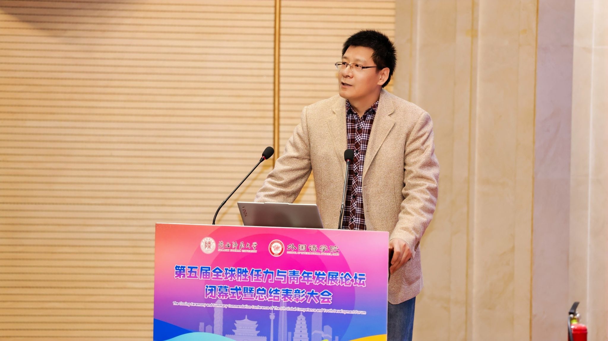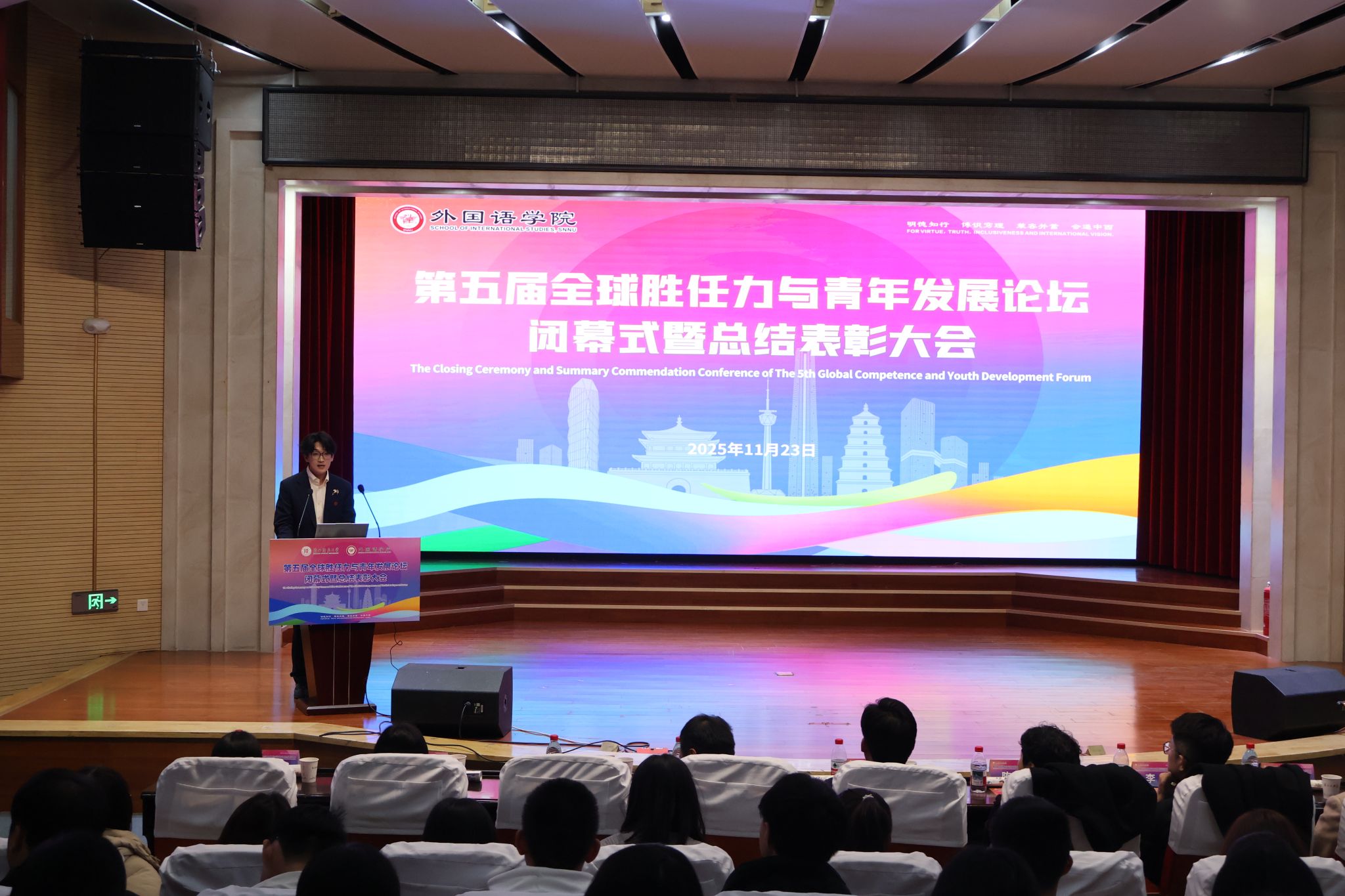 外国语学院院长刘全国教授作总结发言。他回顾了全球胜任力论坛五届以来的历程,对论坛的成长发展和学工团队的创新推进给予高度评价。刘院长从论坛增容提质、推动跨学科深度参与,优化形式、增强覆盖面,创新方式、引入多语种展示等方面提出了建议。面对新时代变革,刘院长还着重阐述了外语学科的发展方向:一是深化区域国别学、国际组织、国际传播的人才培养方向;二是深度认识人工智能,持续培养学生创造力、情感沟通和交际能力;三是推进新文科建设,增强讲好中国故事的本领。他勉励全体学子,要主动适应时代变革,着力提升创新能力和跨文化沟通能力,珍惜宝贵的学习时光,在变革中把握机遇,以创新思维积极应对未来的各种挑战。