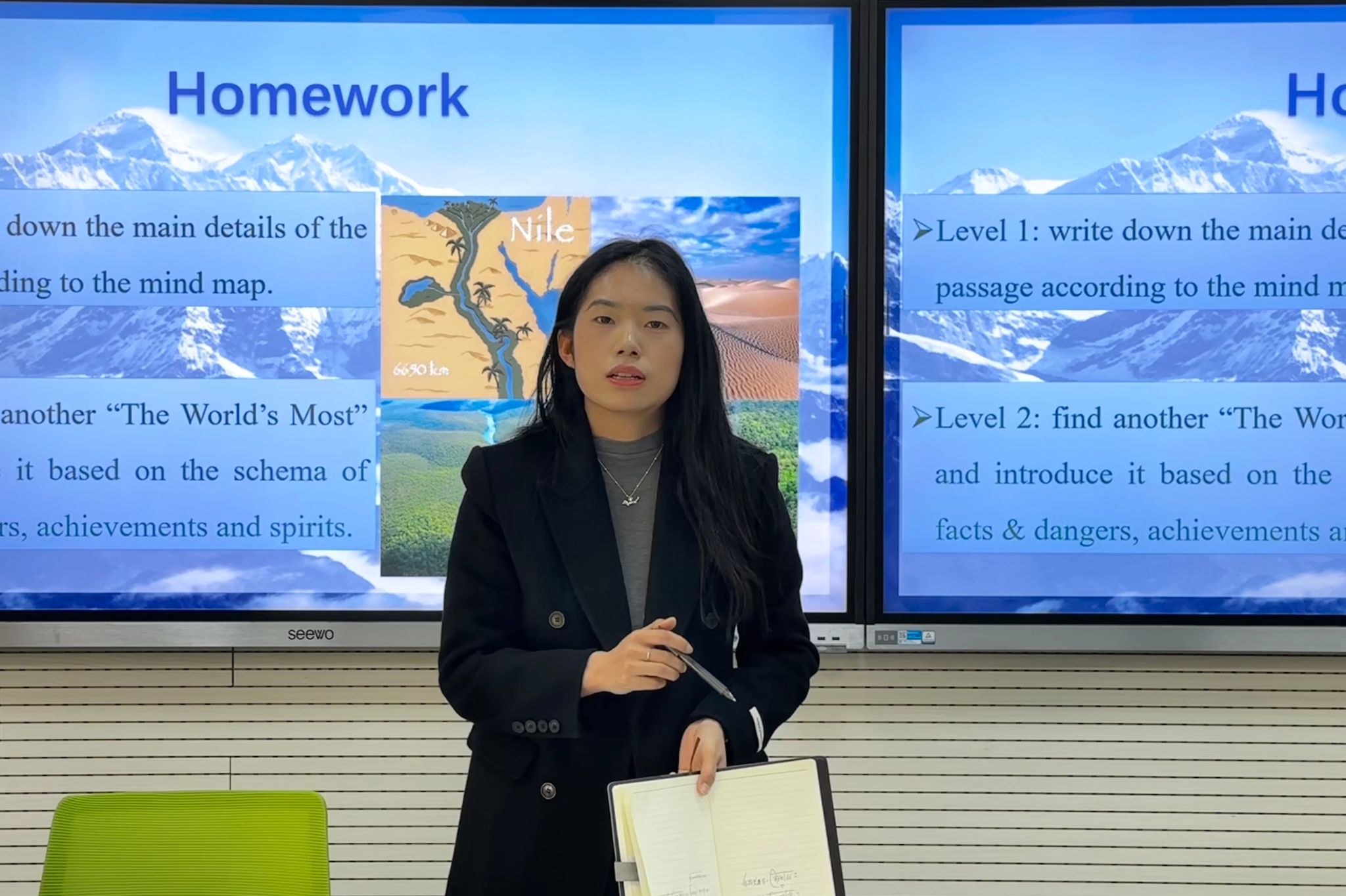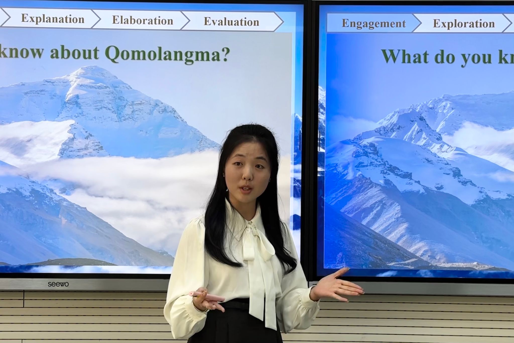2025级学科英语硕士研究生谢雨婷围绕人教版八年级“What’s the highest mountain in the world?”一课,呈现了如何通过真实语境引导学生理解语篇内容。她充分利用图表等数据,组织学生进行猜测、验证和归纳等阅读活动,不仅教授了专业英语知识,同时拓展了地理知识,训练了学生的信息整合和逻辑推理能力。
