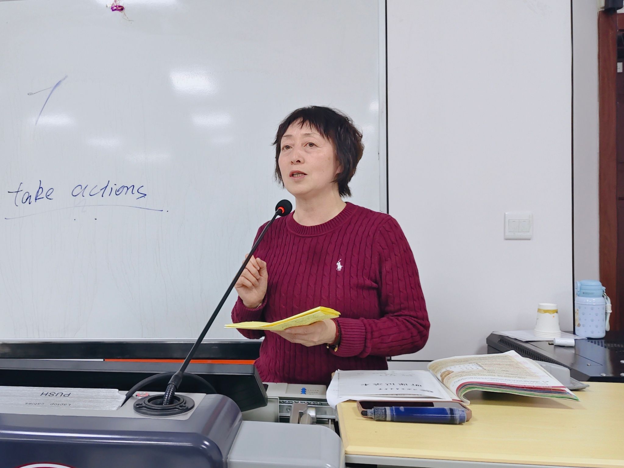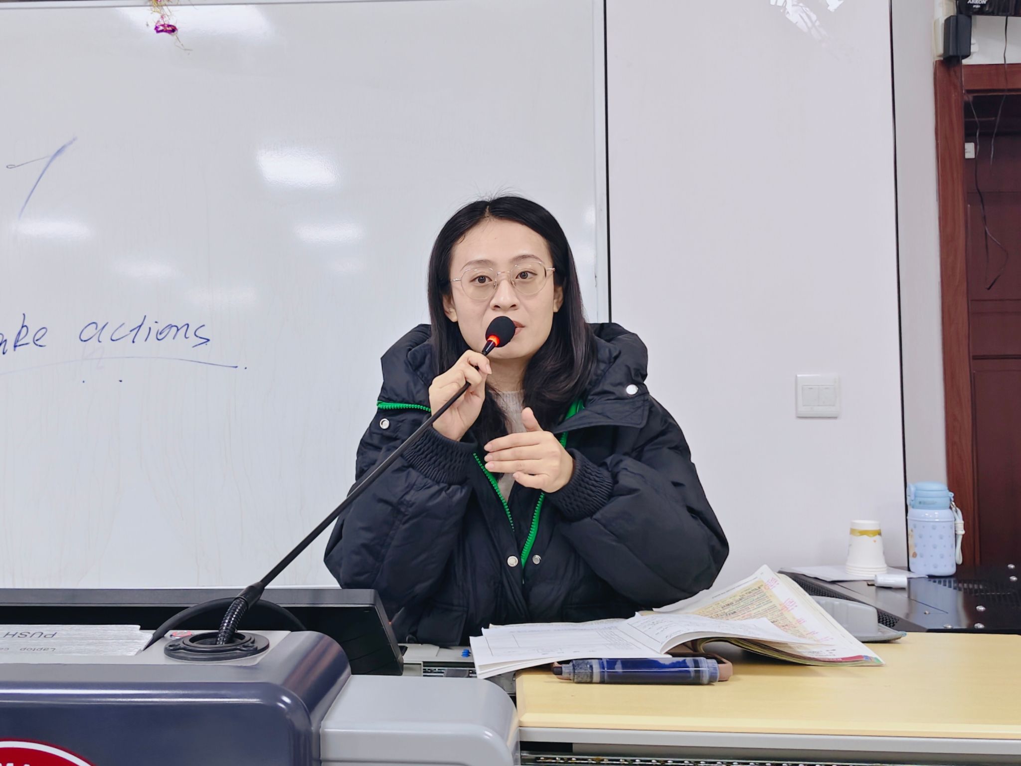 随后,吴铮老师结合自己九年的教学经验,围绕课堂管理、师生关系、教学设计等方面进行了生动详实的分享。她强调开学第一课的专业形象树立、课堂中的权利动态把握、教学语言的逻辑性与感染力,以及“严而有爱、公平一致”的师生相处原则,她指出,教师应不断提升专业水平,通过充分备课、持续输入、真诚沟通赢得学生信任,最终实现教学相长。