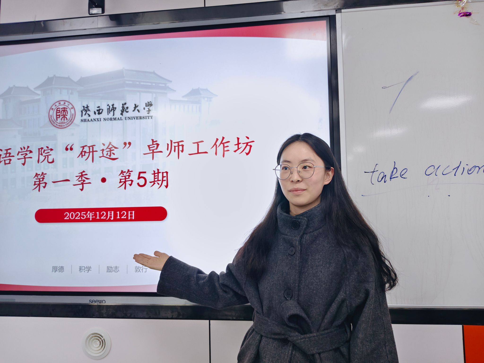为推动学科教学与教师专业能力融合发展,提升研究生教学能力与课堂管理能力,12月12日下午2:30,“研途”卓师成长工作坊第一季第6期在雁塔校区教学六楼6301教室成功举办。本期活动特邀西安市育才中学高中部英语教研组长吴铮和外国语学院兰军副教授作为指导嘉宾,研究生辅导员董洁参加工作坊,2025级英语笔译专业硕士研究生刘蝶影担任主持人。
